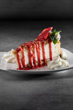 Ricotta cheesecake topped with choice of strawberry champagne or huckleberry chocolate compote