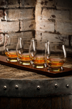 A flight of four international whiskeys